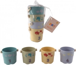 Setul de găletușe Ziro cu tematică de lume marină este jucăria ideală pentru baie pentru cei mai mici. Copiii pot cu ele să ia, să toarne și să strecoare apa, ceea ce dezvoltă în mod natural percepția senzorială și motricitatea fină. Datorită culorilor vii și marcajelor, este și un instrument distractiv pentru învățarea culorilor și a numerelor.