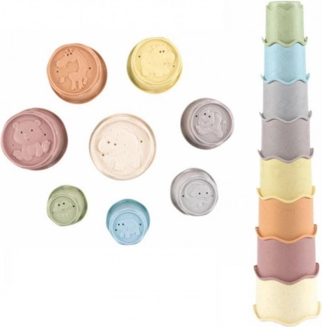 Turnul îndrăgit din 8 cănițe este jucăria ideală pentru cei mai mici. Datorită utilizării universale, copiii le pot folosi la băiță, în nisip sau la joacă în casă. Stivuirea și potrivirea susțin coordonarea mână–ochi și dezvoltarea orientării spațiale.