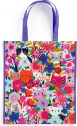 Geantă de cumpărături reutilizabilă cu ilustrații de pisici adorabile și flori, este o alternativă excelentă la pungile de plastic de unică folosință.