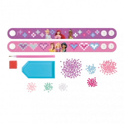 Creează-ți propriile brățări strălucitoare cu tematică Prințese Disney folosind pictura cu diamante! Acest set creativ include tot ce ai nevoie pentru a decora două brățări originale cu pietricele sclipitoare.