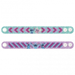 Creează-ți propriile brățări strălucitoare cu motiv Stitch folosind pictura cu diamante. Acest set creativ conține tot ce ai nevoie pentru decorarea a două brățări originale cu pietre sclipitoare.