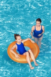 Colacul plutitor BESTWAY, portocaliu neon, cu diametrul de 91 cm, este alegerea perfectă pentru distracția de vară. Datorită construcției solide din PVC și rezistenței la radiații UV și apă sărată, te bucuri de sprijin fiabil și confort atât la înot, cât și la odihnă pe apă.