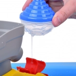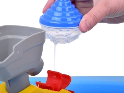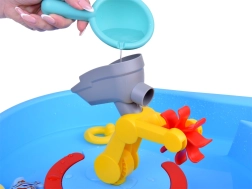 Această masă cu apă albastră este ideală pentru copiii care adoră jocurile cu apă. Dimensiunile sale compacte permit amplasarea ușoară în orice spațiu și transportul facil. Părțile mobile stimulează curiozitatea copilului. Datorită activităților precum rotirea, transferul și stropirea, această masă va oferi copiilor dvs. multă distracție.