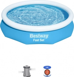 Această piscină de grădină BESTWAY se montează ușor în câteva minute. Pentru a o umfla, aveți nevoie doar de inelul de sus și, odată umplută cu apă, devine complet stabilă. După sezon, puteți scoate piscina ușor datorită supapei de evacuare cu control al fluxului, care permite golirea rapidă a apei. Fabricată dintr-un material robust, piscina oferă durabilitate pe termen lung.