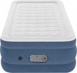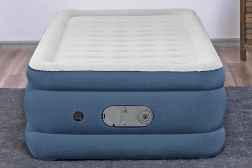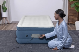 Construcția înaltă (46 cm) facilitează ridicarea și așezarea, în timp ce cadrul lateral asigură protecția împotriva alunecării în timpul somnului. Portul USB integrat și pompa electrică (220-240V) oferă soluții moderne pentru utilizarea zilnică. Fabricată din material PVC durabil pentru o durată de viață mai lungă.