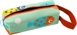 Fabricat din material textil rezistent, de culoare marină deschisă, decorat cu un imprimeu încântător de pești zâmbitori și multicolori și detalii contrastante - fermoar intens portocaliu și mâner pentru transport. Penarul are o construcție ingenioasă cu un singur compartiment cu fermoar solid, care asigură acces rapid la conținut și depozitare sigură pentru toate accesoriile școlare de bază - stilouri, creioane, carioci, gume sau rigle.