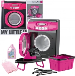 Setul de electrocasnice de uz casnic pentru copii este o alegere excelentă pentru micii curioși care adoră să observe și să imite activitățile casnice zilnice. Jocul de spălat, călcat și sortat haine poate fi nu doar o formă distractivă de a petrece timpul, ci și o experiență educațională valoroasă. Setul include o mașină de spălat jucărie, realist realistă, cu efecte luminoase și sonore, inclusiv un set bogat de accesorii: mini fier de călcat, masă de călcat, coș de rufe, detergenți de rufe imitație, două umerașe și o rochie roz moale. Toate componentele sunt realizate din materiale durabile și sigure.