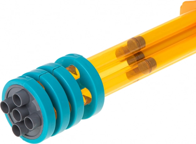 Fabricată din plastic de calitate, această pistolă este ușoară, dar rezistentă. Culorile vii precum galben, portocaliu și albastru atrag privirea oricărui copil.