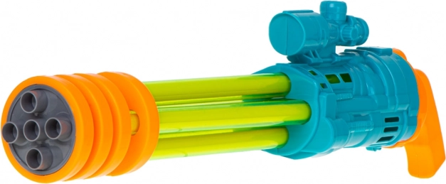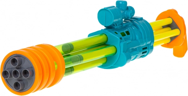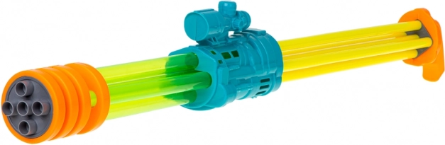 Culori atrăgătoare precum albastru, verde și portocaliu, împreună cu designul de mini tun, captează atenția copilului și îi oferă un sentiment de erou în joc.