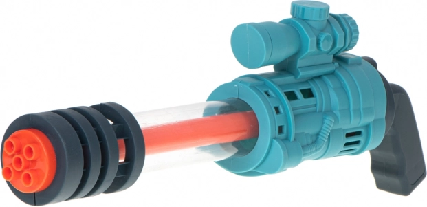 Cu atenție la fiecare detaliu, acest pistol este pregătit să reziste la numeroase dueluri acvatice. Culorile sale vii atrag privirea și amintesc de o armă adevărată, stimulând imaginația copiilor. Produsul este din plastic și este perfect și pentru adulți, astfel încât toată lumea se poate bucura de el! Doar umple-l cu apă și joaca poate începe!