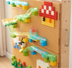 Descoperă lumea creației cu cărămizile Masterkidz. Copiii pot asambla liber propriile modele și piste cu bile: