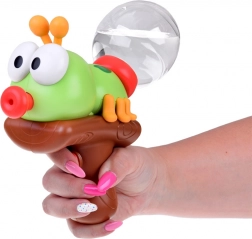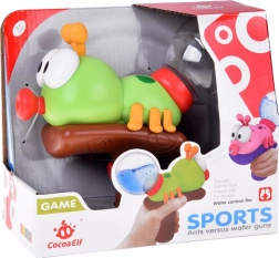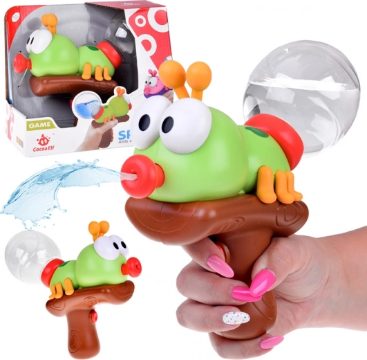 Pistolă de apă Robăcel atrage atenția prin aspectul său unic – are ochi mari, antene drăguțe și o gură deschisă prin care stropește apă la apăsarea trăgaciului. Jucăria are un mâner confortabil și colorat, care funcționează ca prindere și trăgaci.