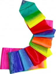 Descoperiți magia dansului și a mișcării cu panglica noastră colorată pentru gimnastică, proiectată pentru a oferi efecte vizuale uimitoare. Cu o lungime de 205 cm și o lățime de 5 cm, panglica plutește grațios în aer și atrage atenția cu culorile sale curcubeu.