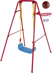 Acest leagăn de grădină versatil combină legănatul îndrăgit cu distracția baschetului. Cadrul metalic stabil, cu diametrul țevilor de cca 2,5 cm, și frânghia solidă susțin șezutul din plastic lat (cca 43 × 25,5 cm) pentru o utilizare confortabilă și sigură. Include coș de baschet ușor de fixat pe cadru, precum și mini minge și pompă pentru joacă imediată.