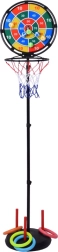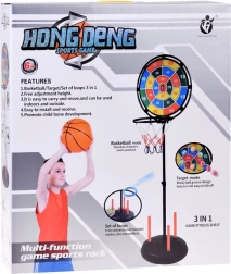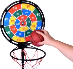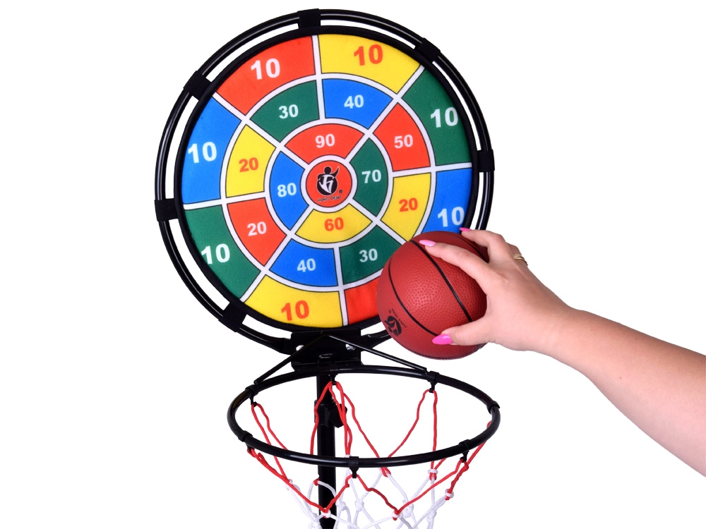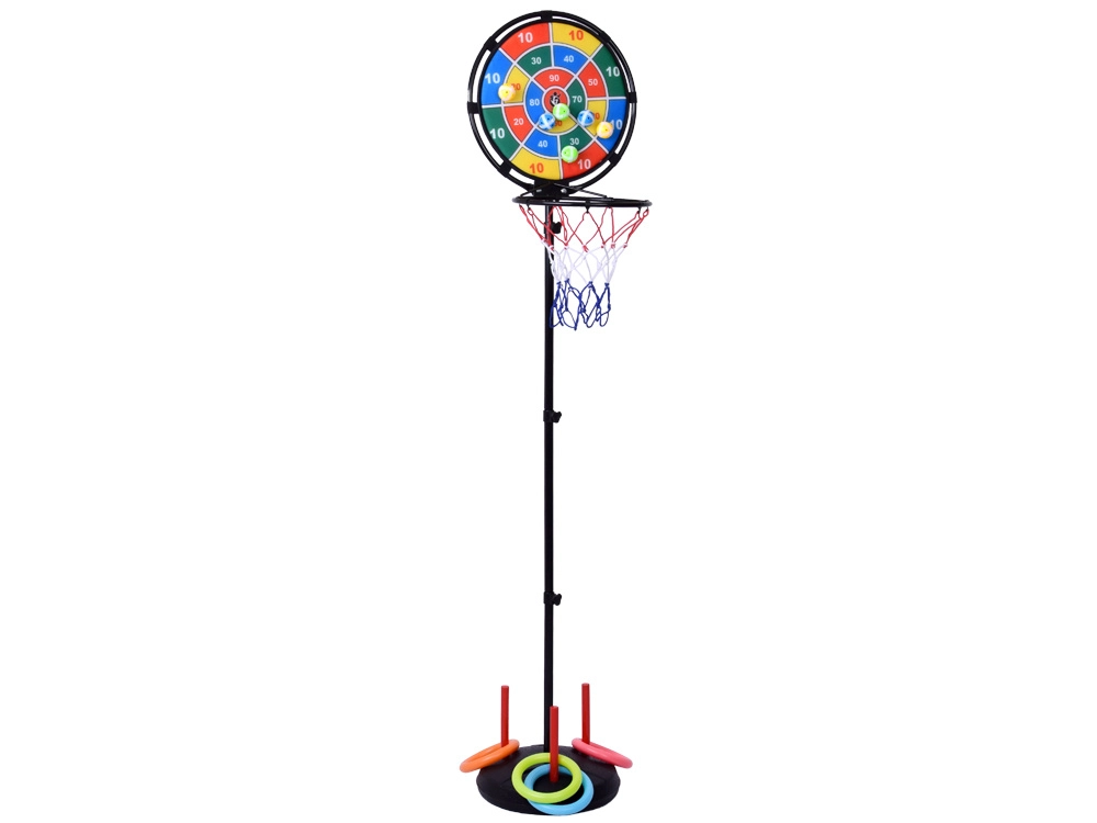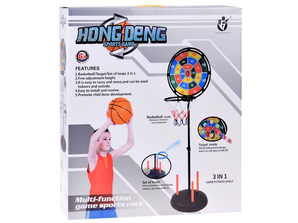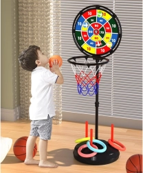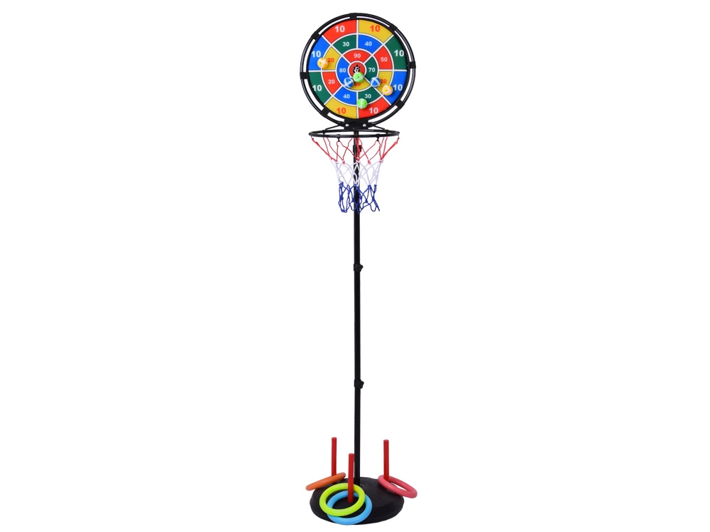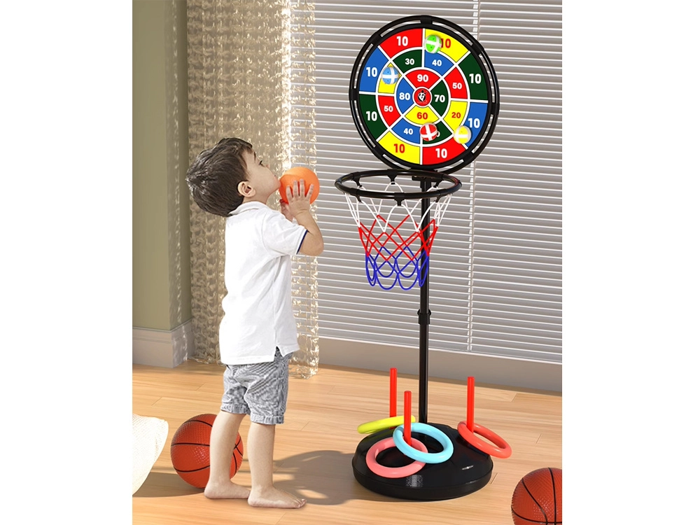 Set sportiv distractiv 3in1, care combină distracția cu activitatea fizică pentru copii și întreaga familie. Permite jocuri de baschet, aruncări la țintă și cu inele - ideal pentru utilizare interioară și exterioară.