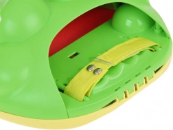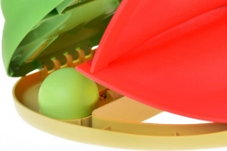 - Pe lateralul catapultei se află un fermoar alb - glisează-l pentru a deschide gura broaștei și a introduce mingea.