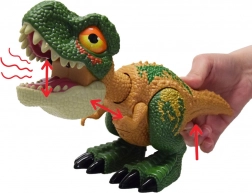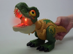 Aduceți acasă prădătorul majestuos Tyrannosaurus Rex, care îți va uimi copiii cu efectele sale de sunet și lumină. Această figurină realistă este alegerea perfectă pentru toți micii paleontologi. Prin apăsarea cozii, activați efectele când capul se mișcă înainte și gura se deschide cu un răget realist, în timp ce din gură emană o lumină roșie intensă, accentuând atmosfera.