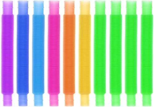 Aceste tuburi nu doar se conectează între ele, dar pot fi extinse iar plierea și deplierea lor emite un sunet plăcut. Acest lucru le face jucării perfecte pentru eliberarea tensiunii și dezvoltarea creativității ludice.