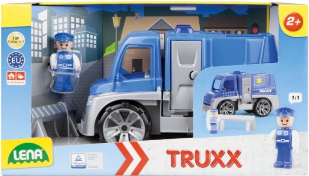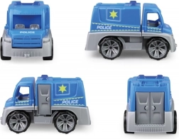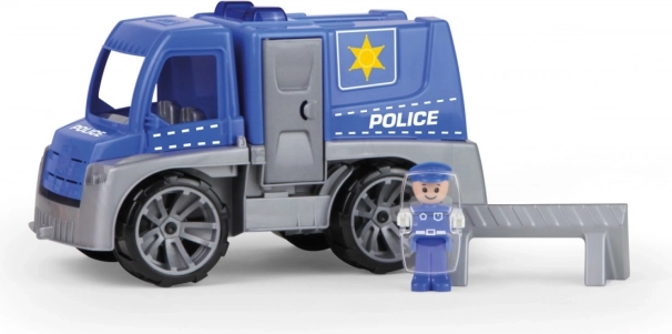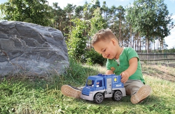 Descoperă camionul de poliție rezistent, care face față aventurilor din grădină și din camera copiilor. Datorită construcției solide și plasticului de calitate, este ideal pentru joaca de zi cu zi. Elemente realiste precum uși care se deschid și cabina rabatabilă stimulează imaginația și dezvoltarea motricității fine.