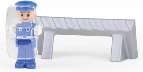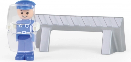 Include o figurină activă de polițist cu scut și o barieră rutieră, care le permite copiilor să creeze propriile scenarii de poliție și să exerseze rolul de a ajuta și a proteja. Jucăria este complet mecanică – fără baterii, doar distracție pură.