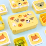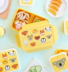 Cutia pentru gustări Prieteni Animale aduce un design distractiv și practicitate pe care copiii le vor aprecia. Capacul său ermetic menține alimentele proaspete și gustoase pe tot parcursul zilei. Cu un recipient detașabil care conține două compartimente, puteți separa cu ușurință diferitele părți ale prânzului sau gustării.