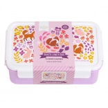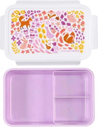 Această cutie practică pentru prânz cu motiv de animale în grădina cu flori este ideală pentru copii la școală sau în excursii. Capac etanș cu clips și recipient detașabil cu două compartimente asigură că gustarea va fi mereu organizată corespunzător.