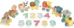 Locomotiva găzduiește cifrele de la 1 la 9, în culori pastelate delicate. Copiii își exersează șirul numeric și culorile într-un mod distractiv și natural.