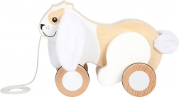Iepurașul adorabil, realizat din lemn de calitate solidă, va cuceri orice copil cu urechiușele și coada sa moi și foșnitoare. Susține abilitățile motorii și încurajează copiii să se târască și să meargă cu ajutorul unei sfori care poate fi trasă cu ușurință. Roțile cauciucate asigură o călătorie lină și silentioasă.