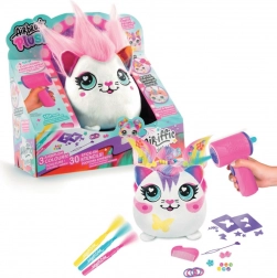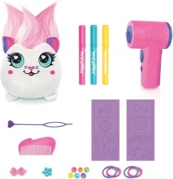 În acest set unic veți găsi un pluș cu păr, un instrument airbrush pe baterii, trei markere și treizeci de șabloane pentru posibilități nelimitate de decorare. După spălare conform instrucțiunilor, puteți începe din nou și crea un nou design.
