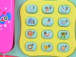 Descoperiți acest telefon muzical colorat pentru copii, care oferă multă distracție și funcții educative. Fiecare buton de pe telefon nu doar că redă diferite melodii și sunete, dar este și marcat cu imagini de animale și numere în engleză. După ridicarea receptorului, sună un telefon cu melodia de bun venit, în timp ce după închidere se aude sunetul caracteristic al așezării receptorului.