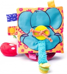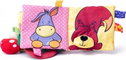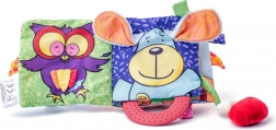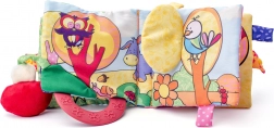 Cartea din material textil oferă de asemenea elemente care pot fi ridicate, introduse și mușcate, stimulând simțurile copilului și încurajându-l să exploreze lumea din jurul său. Este proiectată pentru a fi sigură și durabilă pentru joaca zilnică.