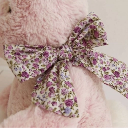 Nuanța delicată de roz și detaliile florale de pe urechiușe și lăbuțe transformă iepurașul într-o decorațiune superbă.