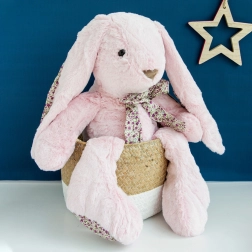 Acest iepuraș mare de pluș, într-o nuanță delicată de roz, încântă prin finețea sa și aspectul gingaș. Stimulează simțurile și curiozitatea copiilor, oferă o senzație de siguranță și devine un companion preferat la somn și joacă.