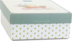 Văcuța este potrivită de la naștere și este realizată din material premium care respectă standardele europene CE. Vine într-o cutie cadou unde puteți păstra amintiri, cum ar fi fotografii și alte suveniruri ale nașterii bebelușului.