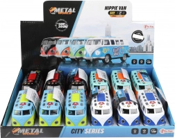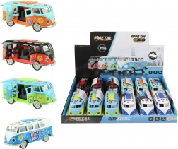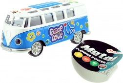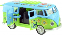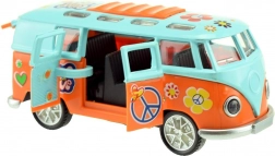 Descoperă autobuzul retro miniatural care atrage la prima vedere prin stilul „hippie” colorat și surprinde prin efecte atunci când este pus în mișcare. E suficient să-l tragi înapoi și să-l eliberezi – mecanismul de inerție asigură o cursă sprintenă, în timp ce luminile și sunetul motorului amplifică experiența.