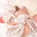 Panglicile din satin cu mesaje drăgăstoase în franceză, care decorează căciulița și pătura, adaugă fiecărei îmbrățișări un plus de tandrețe. Jucăria este ambalată într-o cutie cadou de lux, care este iluminată din interior cu LED-uri.