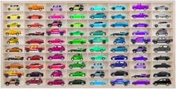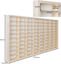 Arătați colecția de mașinuțe metalice astfel încât să fie mereu la vedere și, în același timp, perfect organizată. Raftul din placaj de lemn de calitate are 80 de compartimente practice, astfel încât fiecare model își are locul, iar copiii își găsesc rapid mașinuța preferată, fără căutări îndelungate.