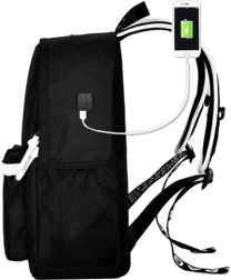 Dotările moderne includ port USB încorporat pentru încărcare ușoară din bateria externă și ieșire pentru căști de 3,5 mm. Compartimentul principal cu fermoare duble găzduiește cărți, laptop sau caiete, iar în interior vei găsi mai multe buzunare pentru accesorii. În pachet primești, de asemenea, penar, cabluri prelungitoare USB și de 3,5 mm și un lacăt cu cod pentru mai multă liniște în călătorii.