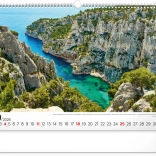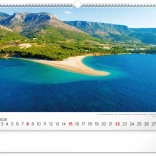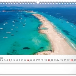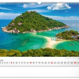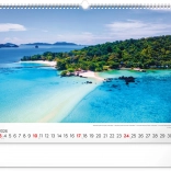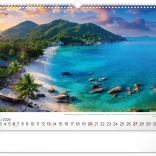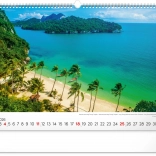 Calendarul de perete Marea 2026 este ideal pentru oricine iubește plajele și destinațiile exotice. Captivează suprafața turcoaz translucidă, palmierii și razele de soare care conturează un adevărat paradis pe pământ. Fiecare lună vă va fermeca cu un alt instantaneu de plajă din Portugalia, Thailanda și alte colțuri ale lumii.