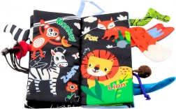 Pagini șuierătoare și cozi de animale ieșite în relief cu texturi și culori diferite stimulează simțurile copilului, dezvoltă curiozitatea și abilitățile manuale ale acestuia. Ilustrațiile colorate ale animalelor, precum zebra sau girafa, încurajează învățarea și joaca. Cartea este ușoară și ușor de transportat, ideală pentru călătorii sau plimbări.