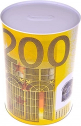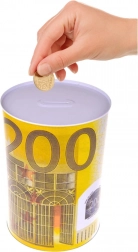 Această eficientă pușculiță metalică sub formă de cutie este imprimată cu o bancnotă de 200 euro. Excelentă pentru toți cei care doresc să economisească cu plăcere și stil. Datorită graficii realiste cu detalii proeminente și a construcției cilindrice robuste, nu doar că îndeplinește o funcție practică, ci și una estetică - poate fi un element decorativ pe masă, raft sau comodă. Fabricată din metal durabil, garantează rezistența la utilizarea zilnică, lovituri minore și avarii mecanice, ceea ce contribuie la longevitatea sa.