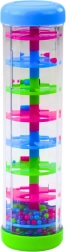 Tubul senzorial cu biluțe colorate este perfect pentru dezvoltarea percepției senzoriale și a concentrației copiilor. La răsturnarea tubului, biluțele încep să sară pe platformele spiralate și emit un sunet liniștitor asemănător ploii.