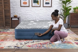Pompa electrică permite umflarea saltelei în doar patru minute.