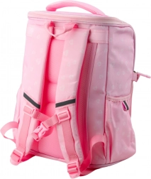 Rucsacul este echipat cu o cameră principală mare, care facilitează depozitarea cărților, caietelor și obiectelor mai mari. Partea din față dispune de trei buzunare suplimentare pentru penar, gustare sau alte accesorii. Partea laterală are două buzunare elastice pentru sticlă sau bidon.