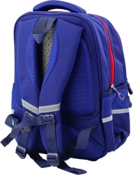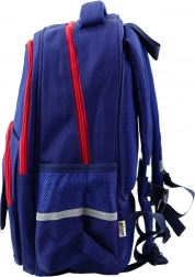 Pe partea din față, se află două buzunare mai mici, ideale pentru cutia de gustări și penar. Pe laterale, ghiozdanul are buzunare pentru sticlă sau bidon. Ghiozdanul are spate întărit cu pernuțe moi pentru sporirea confortului la purtare și o curea reglabilă la piept, care susține distribuția corectă a greutății și crește stabilitatea. Elementele reflectorizante asigură siguranța copilului la amurg.