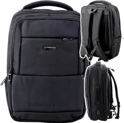 Acest rucsac conține trei compartimente mari. Un compartiment include un buzunar special pentru laptop, care protejează dispozitivul în timpul transportului. Al doilea compartiment este echipat cu un buzunar din plasă și un cablu USB integrat pentru conectarea unui powerbank (nu este inclus). Al treilea compartiment funcționează ca un organizator cu compartimente pentru documente, stilouri și alte accesorii mici.