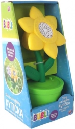 Bucurați-vă de distracție nesfârșită cu bule cu mașina noastră galbenă de bule în formă de floare. Este suficient să apăsați butonul și să vă lăsați învăluiți de mulțimea de bule vesele.