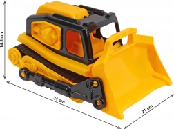 Buldozer din plastic robust și realist, cu lungimea de 30 cm, care îi va încânta pe micii constructori. Datorită șenilelor și încărcătorului frontal funcțional oferă joacă grozavă acasă și afară. Este ușor, rezistent și potrivit și pentru nisip. Mersul liber asigură mișcare lină și control ușor pentru copiii de la 2 ani.