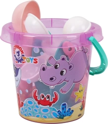 Găleată ușoară și rezistentă cu imprimeu cu animale marine, pentru transportul apei și nisipului. Dimensiune ideală pentru mâinile mici ale copiilor.