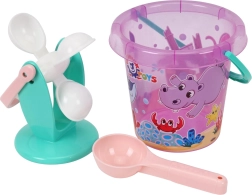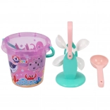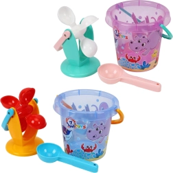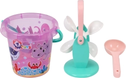 Set colorat pentru copii, pentru nisip și apă, ideal pentru distracție pe plajă, la iaz sau în groapa cu nisip. Conține găleată, moară pentru apă/nisip și lingură/paletă. Plasticul ușor și rezistent face față apei, nisipului și soarelui. Susține creativitatea, motricitatea fină și coordonarea. Potrivit de la 1 an.